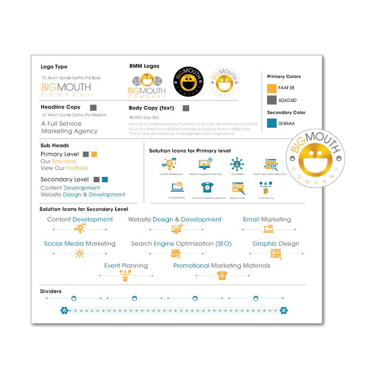 In the fast-paced and visually driven world of marketing, graphic design plays a crucial role in capturing attention, communicating messages, and establishing brand identity. At Big Mouth Marketing, we offer comprehensive graphic design services that bring creativity and strategy together. From logo design and brand identity development to stunning visual assets and captivating marketing collateral, our graphic design solutions are tailored to help businesses stand out in a crowded marketplace and make a lasting impact on their target audience.